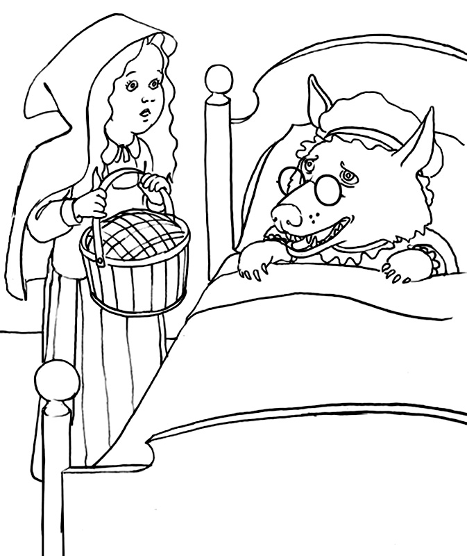 Lupul Si Scufita Rosie De Colorat